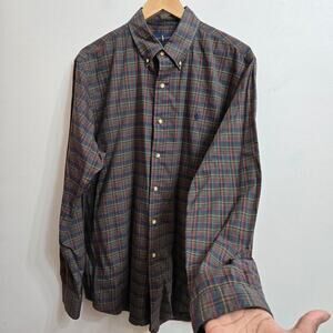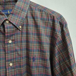 Ralph Lauren Mens Y2K Plaid Classic Button-Down Shirt Size Large Preppy Academia