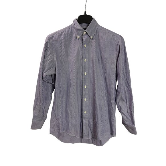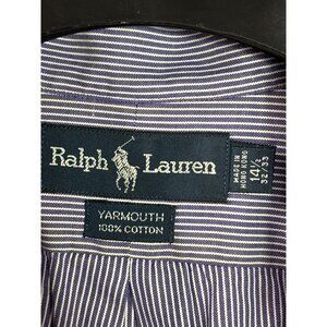 Ralph Lauren Mens Yarmouth Long Sleeve Button Down Shirt Size 14.5 32/33 Purple White Striped 100% Cotton