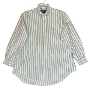 Ralph Lauren Mens Yarmouth Button-Down Shirt Striped Green White Size 17-34