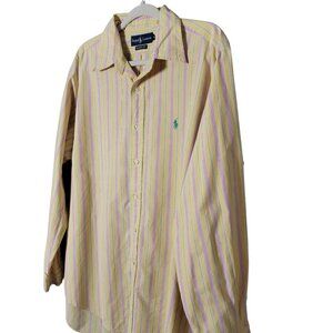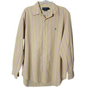 Ralph Lauren Mens Yellow Pink Striped Long Sleeve Button Down Dress Shirt Large