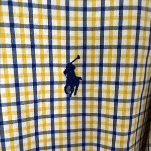 Ralph Lauren Men's Yellow and Blue Checkered Shirt 100% Cotton #493