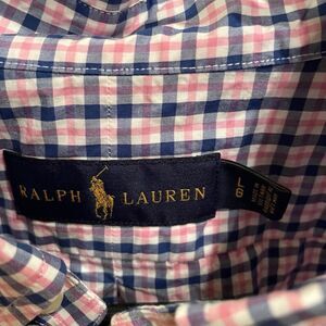 Ralph Lauren Mens Gingham Plaid Long Sleeve Button Down Shirt L Pink Blue