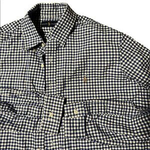 Ralph Lauren Men's Oxford Classic Fit Long Sleeve Button Down Shirt NAVY Gingham. Size L. Great condition