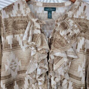 Ralph Lauren Mesh Top Plus 2X Ruffle Aztec Southwest Sheer Lace Western Boho