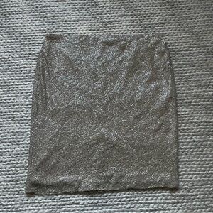 Chic metallic gray pencil skirt. Ideal for evening wear.