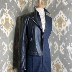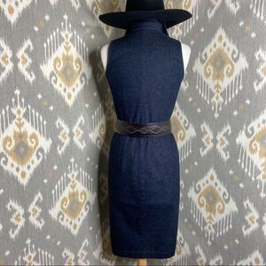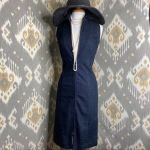 Ralph Lauren Midnight Indigo Wash Cotton Stretch Denim Lamb Leather Sheath Dress