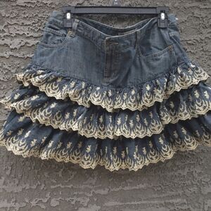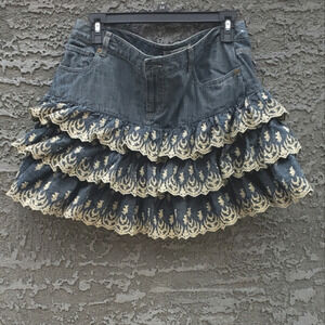 Ralph Lauren Mini Skirt Tiered/Ruffle Embroidery Trim Cotton Fit-Flared