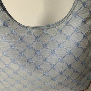 Ralph Lauren Monogram Canvas Hobo Bag Blue & Beige With Adjustable Strap