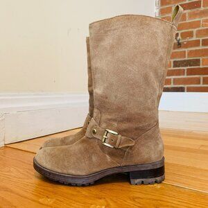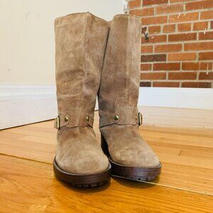 Ralph Lauren Motorcycle Boots Mid Calf Tan Suede Pull On Lug Soles Size 6 1/2