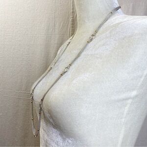 Silver tone chains with rings and gold tone accent beads - toggle closure- gently worn, no flaws - signed on toggle - can be worn doubled as a choker