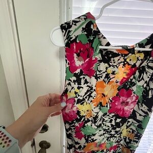 Vibrant floral design with sleeveless cut. Perfect for warm days. Elegant and stylish.