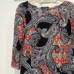 Ralph Lauren Multicolor Paisley 3/4 Long Sleeve Top women’s medium multi color