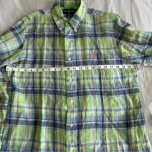 Men’s Ralph Lauren Green Plaid Linen Short Sleeve Button Down Shirt - Custom Fit