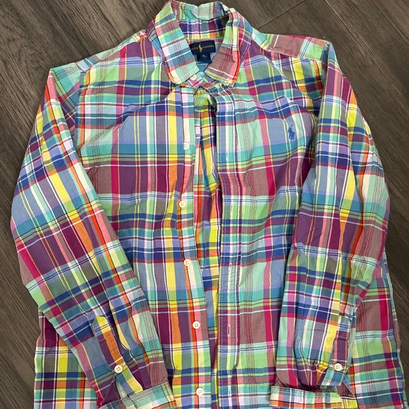 Gently worn multicolored plaid dress shirt by Ralph Lauren. XL (18/20)