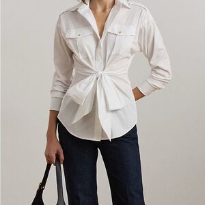 Ralph Lauren NWOT Tie-Front Cotton-Blend Shirt with Gold Anchor Buttons