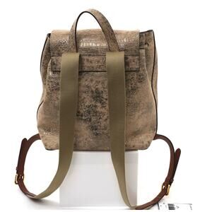 Ralph Lauren NWT Cream Metallic Distressed Embossed Pattern Adjustable Backpack