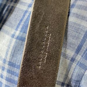 Solid brass buckle with a burnished-gunmetal finish, secures with a single stud/peg in hole closure, and features a three dimensional skull, with a “RL” signature logo discreetly embossed on the back.
