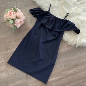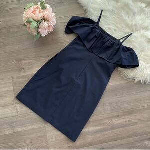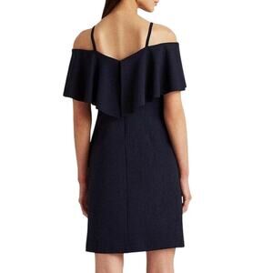 Ralph Lauren Navy Blue Off Shoulder Crepe Ruffle Sheath Dress