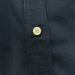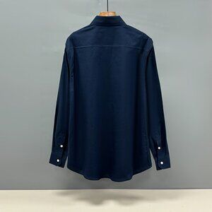 Navy Blue Cotton Fabric, Button-Up Collar, Red Pony Embroidery on Left Chest.