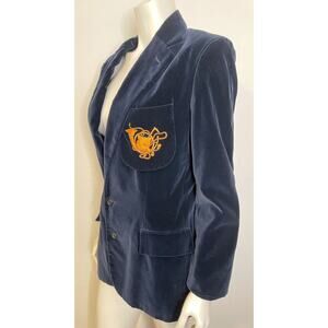 Ralph Lauren Navy Blue Velvet Fox Crest Blazer Jacket Womens 10 Embroidered Horn