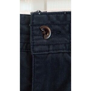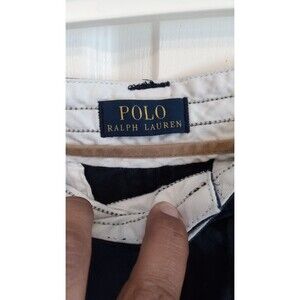 Ralph Lauren Navy Blue cargo shorts. Overall good condition. Does have one flaw which is a cracked button shown in photos. Size measures a medium. Size chart included.