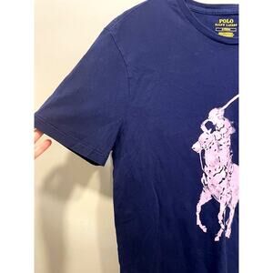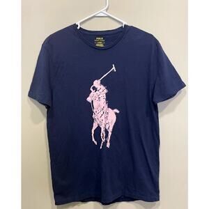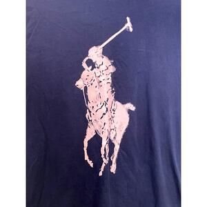 Ralph Lauren Navy Blue with Pink Horse Logo Short Sleeve Tee Sz Med