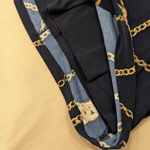 • Color: Navy with gold chain print