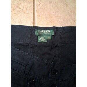 This Ralph Lauren Navy Skirt is a stylish and nautical-themed piece perfect for casual occasions. The dark navy blue color, solid pattern, and knee-length design make it a versatile option for all seasons. With a tie-back closure and button front accents, this skirt adds a touch of sophistication to your wardrobe. Made from comfortable cotton fabric, this skirt in size 14 is a great choice for women looking to incorporate a high-rise, mini style into their look.