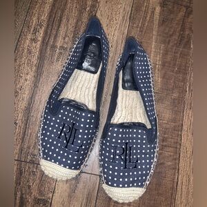 Ralph Lauren Navy Polka Dot Espadrilles Cristi 6.5 preppy classic boho fall
