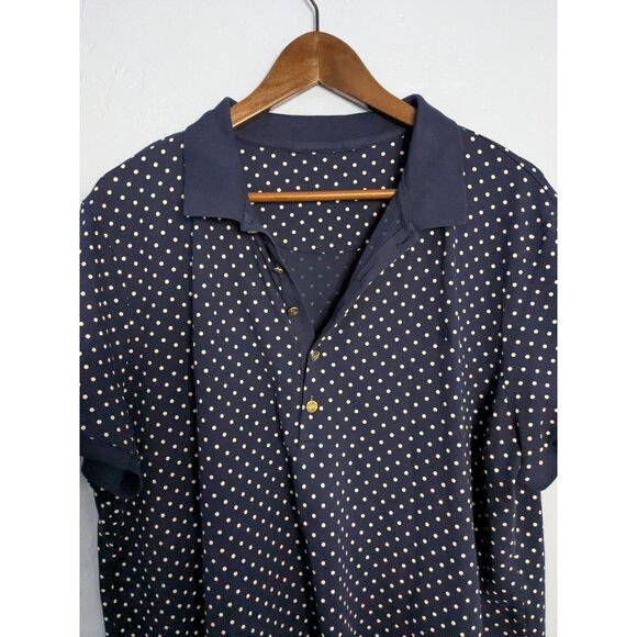 Ralph Lauren Navy Polka Dot Polo Shirt W/ Gold RL Buttons Short Sleeve 100% Cott