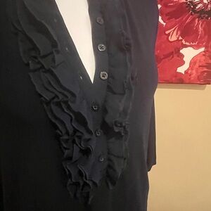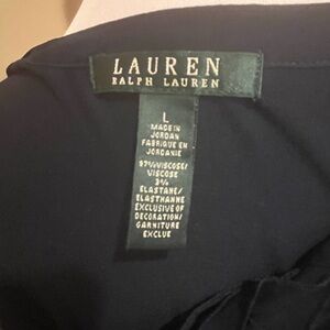 Ralph Lauren Navy Ruffle Front Long Sleeve Henley Tee, size Large