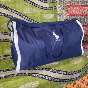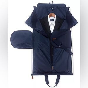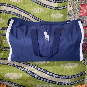 ▪️Style: Duffel/ garment convertible bag, top zip closure, both sides unzip, double handles with 7" drop, adjustable strap, faux leather trim, embroidered Ralph Lauren logo