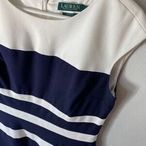 Ralph Lauren Navy/White Stripe Knee-Length Sleeveless Classic Sheath dress, Size 10
