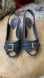 Elegant espadrille sandals with navy fabric and brown trim. Features a stylish buckle accent. Ideal for casual outings.used