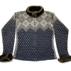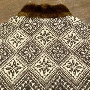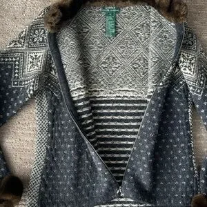 Ralph Lauren Navy and Cream Fair Isle Zip Jacket with Faux Fur Trim