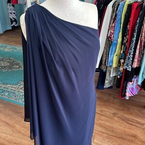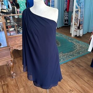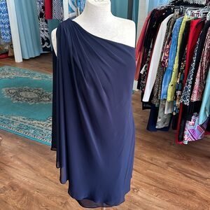 Ralph Lauren Navy One Shoulder Chiffon Cocktail Dress Size 8