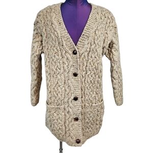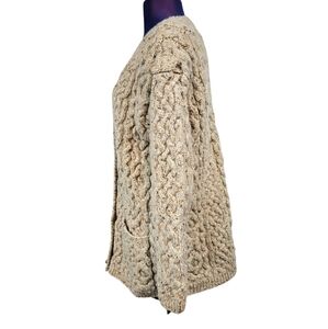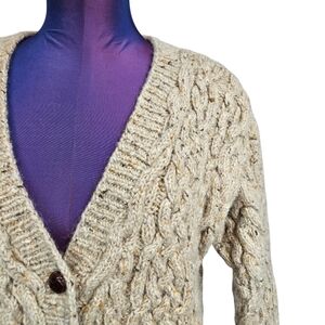 Ralph Lauren Neutral Fisherman Hand Knit Wool Cardigan Sweater Size Small Women