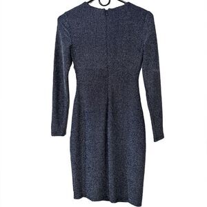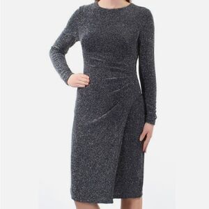Ralph Lauren New Navy Shimmer Silver Accent Long Sleeve Ruched Cocktail Dress 0P