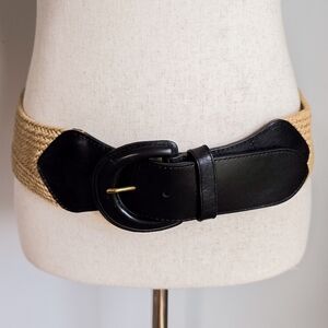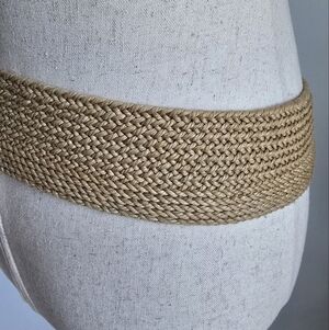 Ralph Lauren, New Woven Brown Leather Buckle Wide Statement Belt Size Small