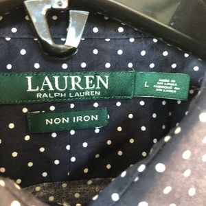 Ralph Lauren Non Iron Polka Dot Button Down Long Sleeve Shirt Top Like New L