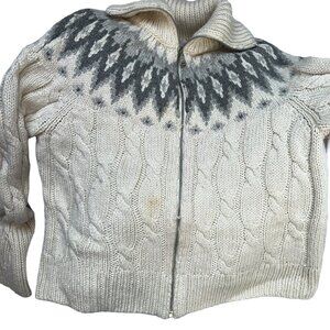 Ralph Lauren Norwegian Fair Isle super soft heavy cream gray wool vintage shawl neck zip up cardigan sweater