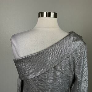 Ralph Lauren Off the Shoulder Long Sleeve Cocktail Dress Silver Size 8 Sheath