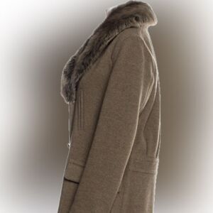 Ralph Lauren olivey morel mushroom toned wool felt double breasted coat with detachable lamb shearling shawl collar, cupro lining.