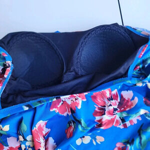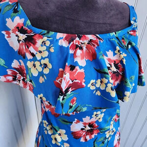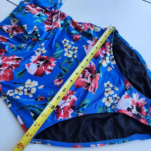 Ralph Lauren One Piece Swimsuit Off Shoulder Floral Blue Pink Print Sz 12