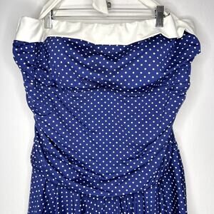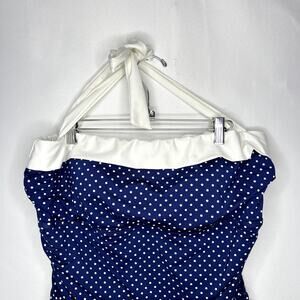Ralph Lauren One Piece Swimsuit Ruched Halter Polka Dot Navy Print Size 20W