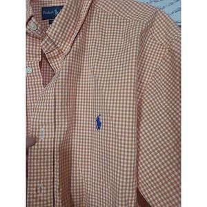 Ralph Lauren Orange Gingham Classic Fit Pocket Button Down Shirt Mens Size Large. Pre-owned