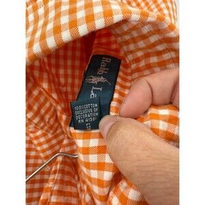 Ralph Lauren Orange White Gingham Plaid Shirt Mens XL Classic Fit