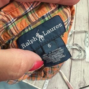 Ralph Lauren Orange and Green Plaid button front Shirt boys sz 6 100% cotton