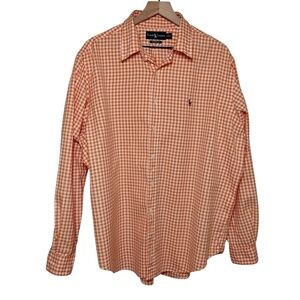 Ralph Lauren Orange/White Classic Fit Gingham Oxford Button Down (Brown Pony) XL