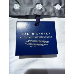 Ralph Lauren Organic Cotton Border Sateen standard Pillowcase Pair white Graphit